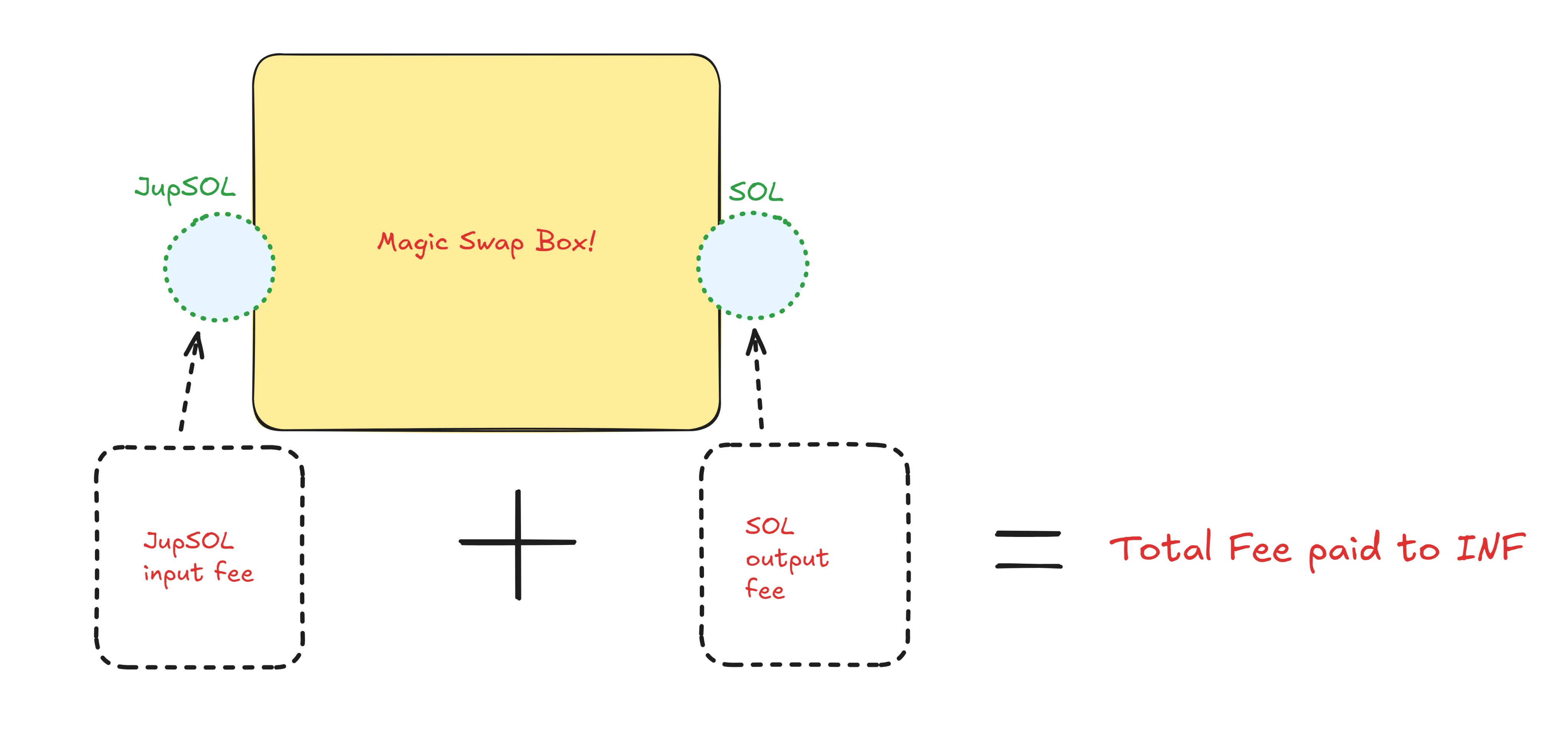 The total fee Mr. INF will charge them is the [Input fee] for JupSOL plus the [Output fee] for SOL. Because JupSOL is going 'in' and SOL is coming 'out'.